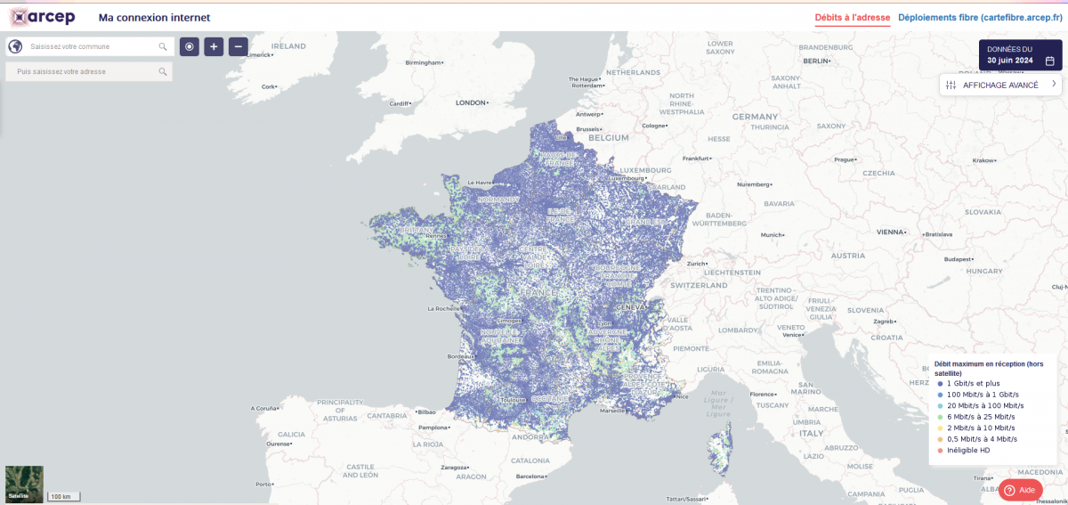 Le régulateur des télécoms propose un outil très pratique si vous voulez en savoir plus sur les débits proposés par chaque opérateur près de chez vous. Le site “Ma Connexion internet” rassemble sous forme de cartes toutes les informations sur les débits proposés par les opérateurs, pour l’ensemble des technologies de l’internet fixe, en France métropolitaine et en outre-mer.